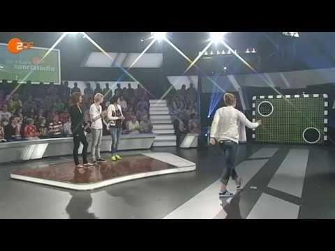 Kerem Arslan aus Gelsenkirchen trifft der Torwand auf die beiden Zweier-Teams Philipp Buhl und Erik Heil sowie Celia Okoyino da Mbabi und Nadine Angerer - ZDF Sport Facebook fan page BoomSocial